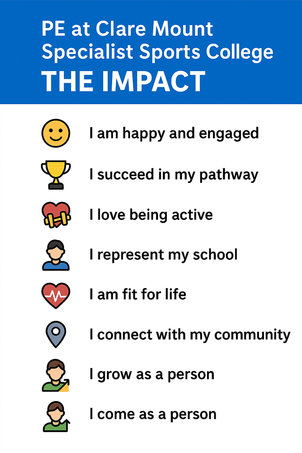 1. Inclusive for All: Our PE curriculum ensures that every student, regardless of need or ability, has access to meaningful, enjoyable, and personalised opportunities to take part in physical activity and school sport.